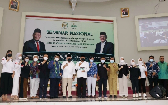 Seminar dengan tema “Wawasan Kebangsaan dan Pembangunan Daerah Menyambut Ibu Kota Negara (IKN) Baru“, diikuti sejumlah senator, Menteri Pekerjaan Umum dan Perumahan Rakyat, M Basuki Hadimoeljono (hadir virtual), utusan Gubernur Kalimantan Timur, utusan Bupati Penajam Paser Utara, Rektor IAIN Samarinda Prof Muhammad Ilyasin, serta staf ahli Bappenas Dr Son Diamar.