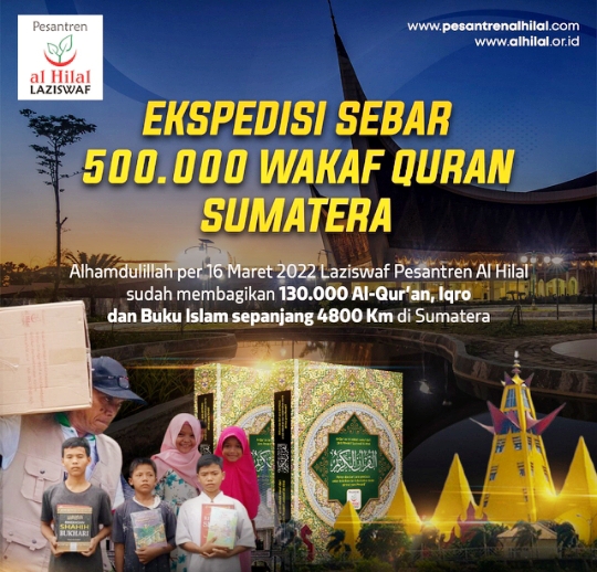 Kloter pertama Tim Ekspedisi Sebar Wakaf Quran Sumatera, berangkat pada tanggal 24 Februari 2022 dari Bandung ke Lampung untuk menyalurkan langsung wakaf sebanyak 500 ribu Al Quran, 50 ribu buku Islam, dan 50 ribu Iqra, dengan menggunakan bantuan 50 truk pengangkut.