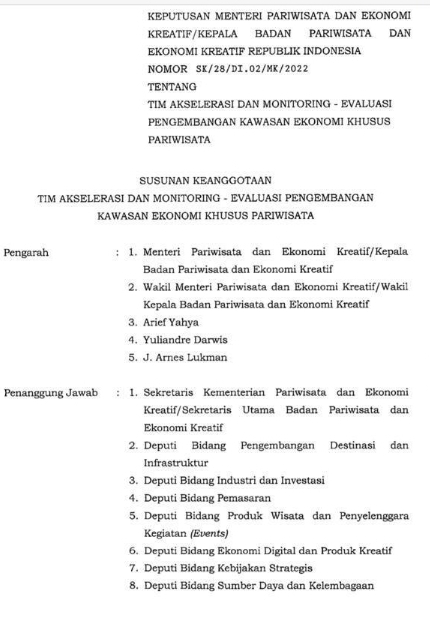Sementara penanggungjawab tim, Sekretaris Kementerian Pariwisata dan Ekonomi Kreatif / Kepala Badan Pariwisata dan Ekonomi Kreatif, yang didampingi 7 deputi yang ada di kementerian itu.