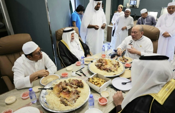 Sementara Syeikh Saleh didampingi putranya, Dr Abdurrahman Al-Syaibi. Ikut hadir dalam jamuan makan tersebut, Staf Konjen RI Jeddah Muzzafar Sahidu dan pengurus Hidayatullah Pusat Ustadz Andi Arlin.