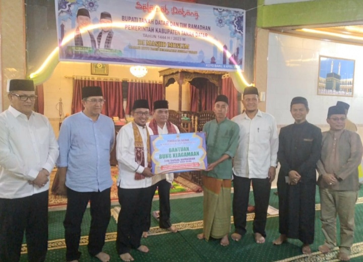 TANAH DATAR, AmanMakmur—Tim Khusus Safari Ramadan yang dipimpin Bupati Eka Putra mengunjungi Masjid Muslim di Nagari Koto Baru Kecamatan Sungai Tarab Kabupaten Tanah Datar, Sabtu (8/4/2023).