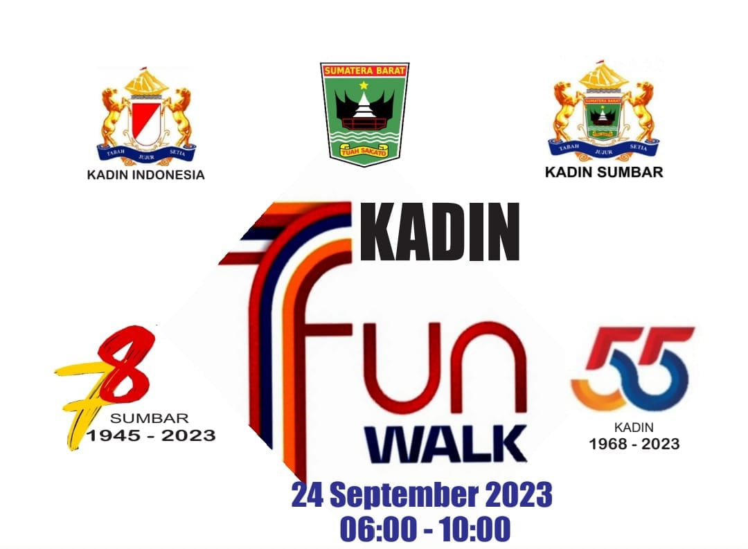 PADANG, AmanMakmur ––Memperingati Hari Ulang Tahun (HUT) ke-55 Kamar Dagang dan Industri Indonesia (Kadin) yang jatuh pada Minggu, tanggal 24 September 2023, dan sekaligus HUT ke-78 Provinsi Sumbar, Kadin Sumbar bakal menggelar jalan sehat dengan tajuk Fun Walk Kadin Sumbar.