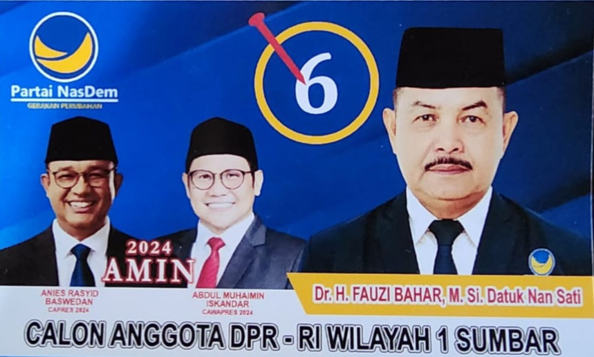Majunya Fauzi Bahar, yang merupakan putra Ikua Koto Kecamatan Koto Tangah Kota Padang ini, untuk kedua kalinya dengan Partai Nasdem. Dimana pada Pemilu 2019 lalu Fauzi Bahar ikut caleg DPR RI juga, tapi nasib belum berpihak kepadanya.