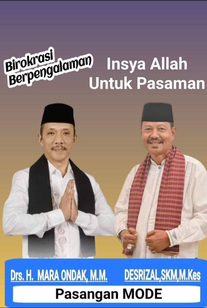 Mara Ondak – Desrizal yang Inshaa Allah akan didukung sejumlah partai, berharap dapat mewujudkan niat baik, dan mimpinya membawa Kabupaten Pasaman berkualitas dan maju pesat dalam segala aspek. “Inshaa Allah, untuk Pasaman, kami siap berbuat terbaik,” tekad Mara Ondak dan Desrizal menyampaikan komitmennya.*)