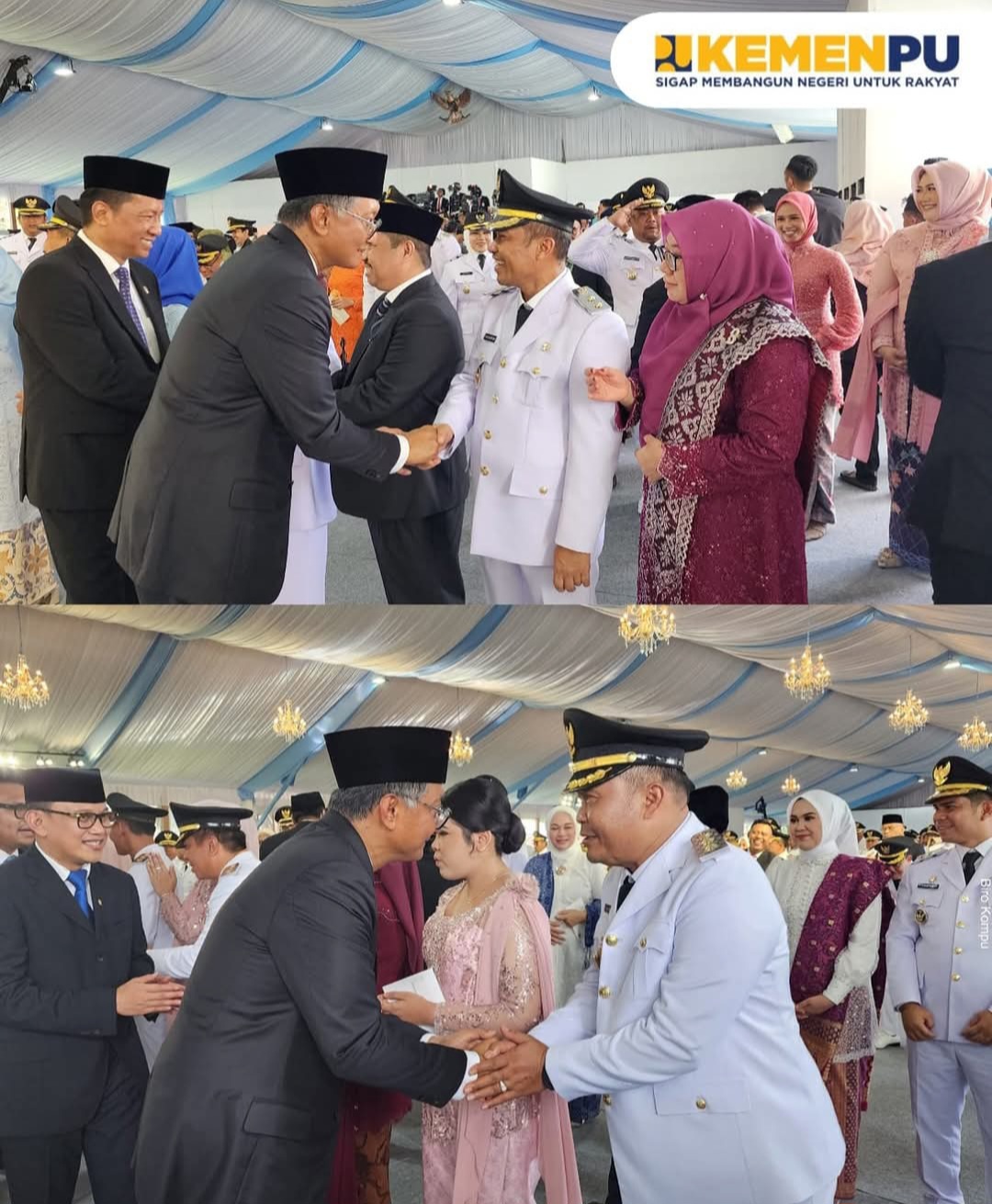 JAKARTA, AmanMakmur —-Menteri PU (Pekerjaan Umum) Dody Hanggodo menghadiri pelantikan 961 kepala daerah dan wakil kepala daerah yang dipimpin Presiden Prabowo Subianto di Istana Negara, Kamis (20/2/2025).