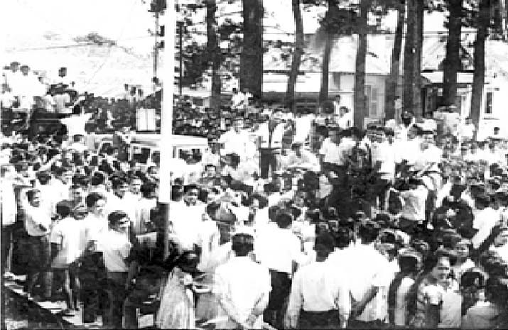 Saat itu berpuluh puluh tentara, bersenjata lengkap, dengan bedil berisi peluru tajam, mengawasi demo tersebut dengan wajah beku!