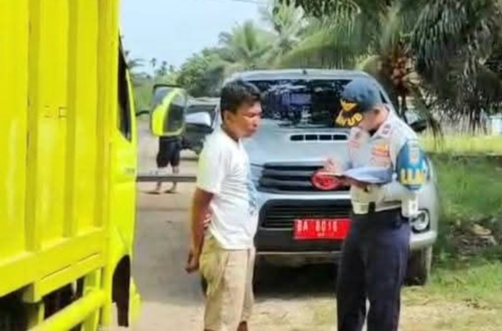 DHARMASRAYA, AmanMakmur —Dinas Perhubungan (Dishub) Kabupaten Dharmasraya melakukan pengawasan dan identifikasi kendaraan angkutan barang yang melintas di ruas jalan provinsi, Koto Baru–Ampalu menuju Tanjung Samalidu, Rabu (1/10/2025).