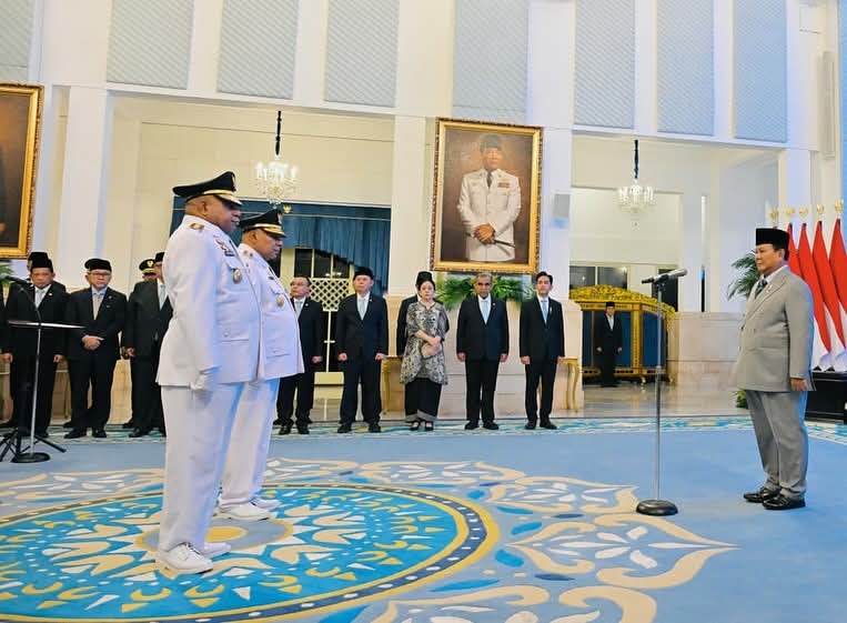 JAKARTA, AmanMakmur — Presiden Prabowo Subianto melantik Matius Fakhiri dan Aryoko Alberto Ferdinand Rumaropen sebagai Gubernur dan Wakil Gubernur Papua, di Istana Negara, Jakarta, Rabu (8/10/2025).
