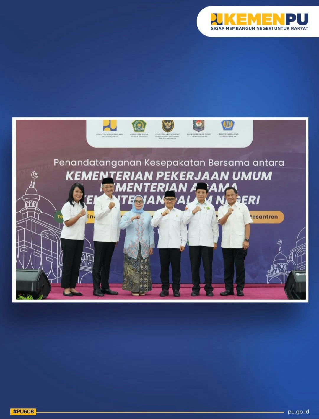 Penandatanganan dilakukan oleh Menteri Pekerjaan Umum Dody Hanggodo, Menteri Agama Nasaruddin Umar, dan Menteri Dalam Negeri Muhammad Tito Karnavian, disaksikan Menteri Koordinator Bidang Pemberdayaan Masyarakat Abdul Muhaimin Iskandar.