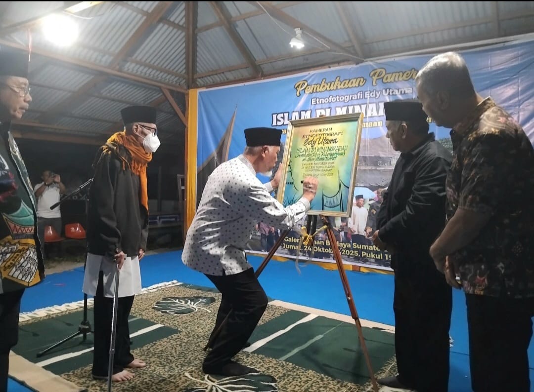 PADANG, AmanMakmur ––Gubernur Sumbar Mahyeldi Ansharullah membuka secara resmi Pameran Etnofotografi karya seniman dan budayawan Edy Utama yang bertajuk “Islam di Minangkabau: Surau dan Ritus Keberagamaan di Sumatera Barat”, yang digelar di Galeri Taman Budaya Sumbar, Jl Diponegoro Padang, Jumat (24/10/2025) malam.
