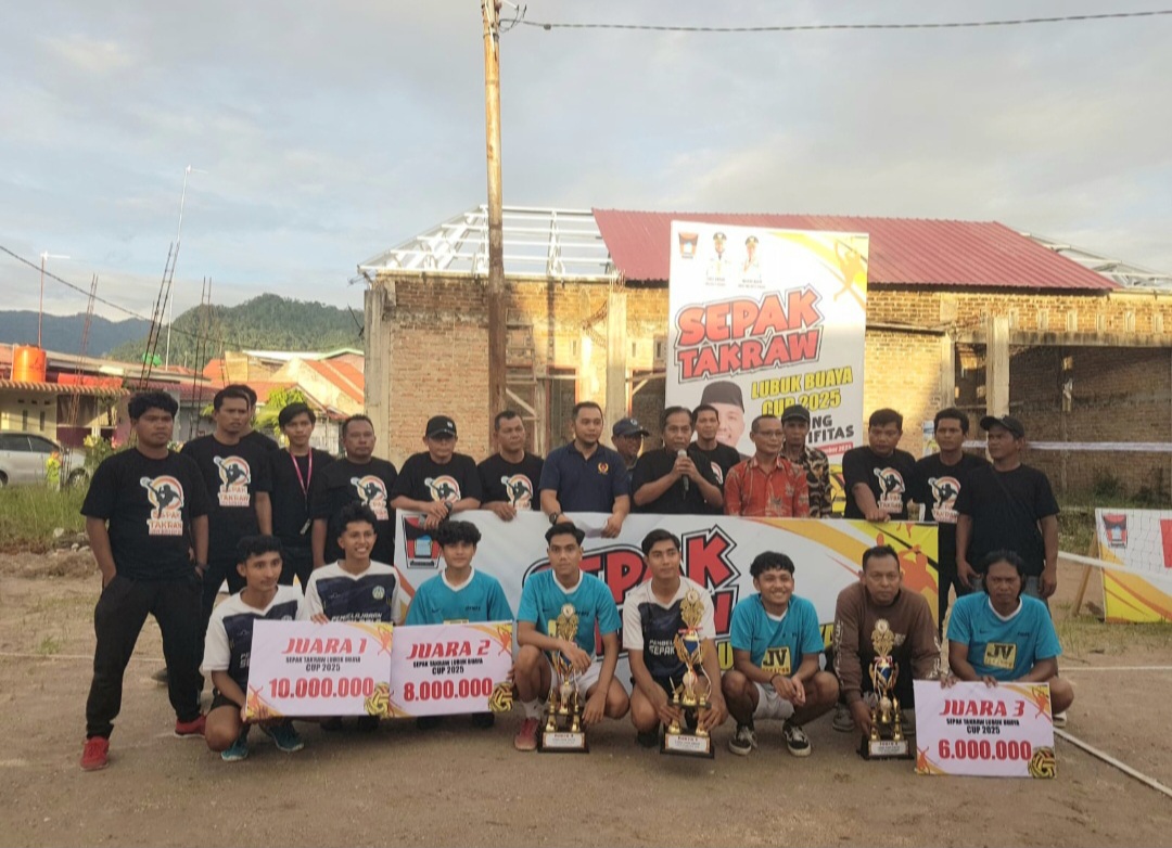 PADANG, AmanMakmur —–Kejuaraan Sepak Takraw Lubuk Buaya Cup 2025 resmi berakhir, Kamis (20/11/2025), dengan pemuncak sang Juara I diraih CFC FC.