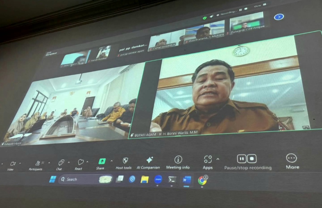 AGAM, AmanMakmur —– Pemerintah Kabupaten Agam menggelar Video Conference (Vicon) Rapat Staf Penanganan Bencana Alam yang dipusatkan di Ruang Rapat Bupati Agam, Selasa (25/11/2025) pagi.