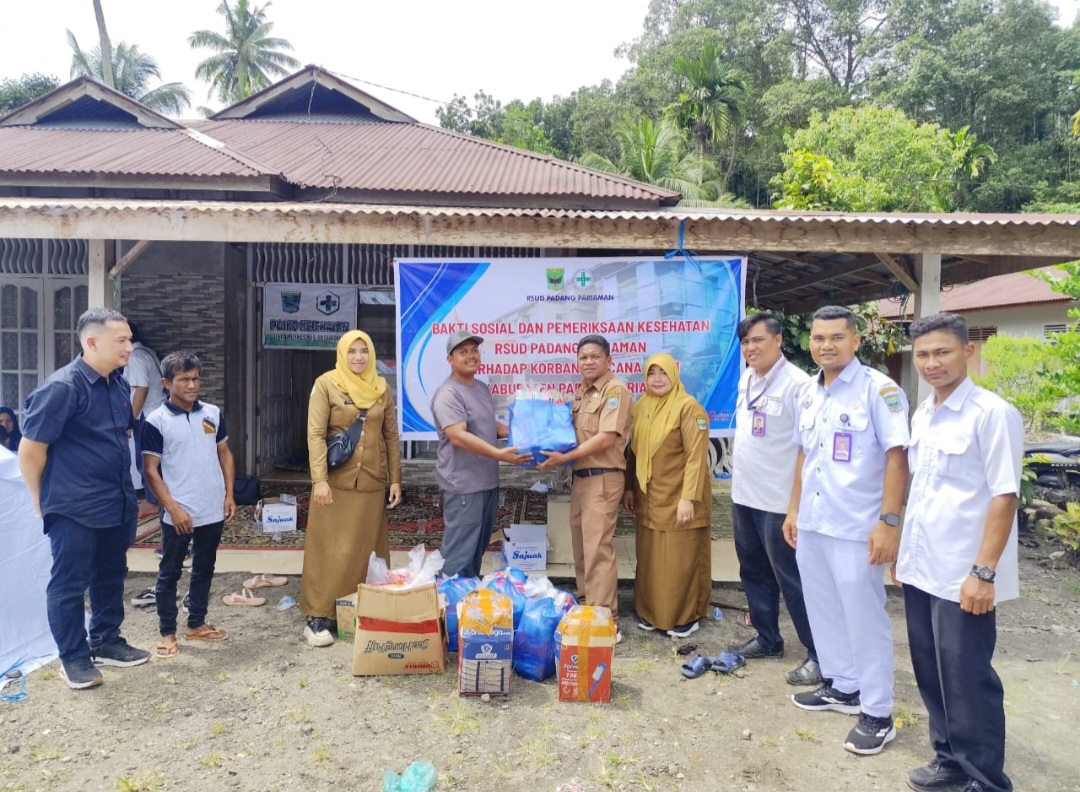 Selain pemeriksaan dan pelayanan kesehatan gratis, tim RSUD Padang Pariaman yang dipimpin dr Syafrinawati, juga berbagi bantuan berupa sembako sebanyak 400 paket, yang diterima langsung masyarakat terdampak serta bantuan berupa 70 paket untuk keperluan anak-anak sekolah.