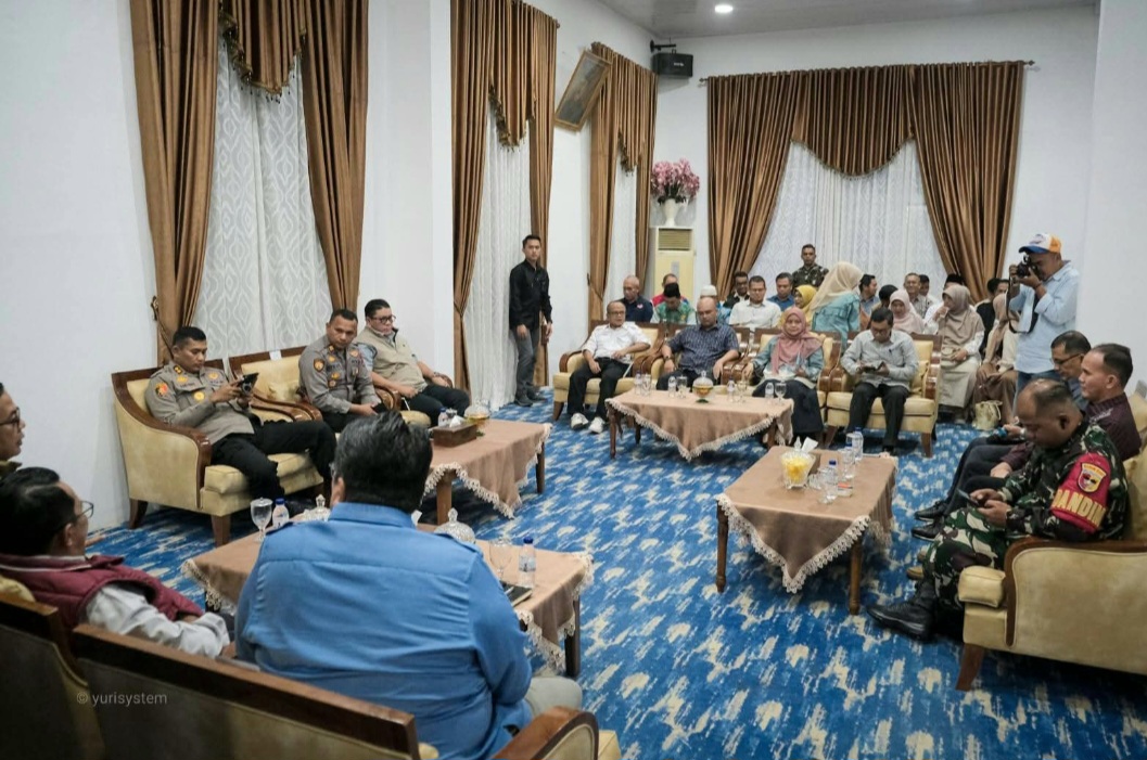“Bapak, Ibuk semua yang juga turut hadir Bapak Wakil Bupati Ahmad Fadly, Ketua DPRD Bapak Anton Yondra, Sekda, Staf Ahli, Asisten, Kepala Organisasi Perangkat Daerah (OPD), Forkopimda dan semua yang hadir saat rapat evaluasi sekaligus penutupan masa tanggap darurat bencana alam. Malam hari ini kita berdiskusi yang cukup panjang dan kita mengambil kesimpulan untuk 7 bulan ke depan, Pemerintah Daerah menetapkan masuk di transisi darurat pemulihan pasca bencana, jadi mulai dari besok tanggal 28 Desember hingga akhir Juli 2026 mendatang,” ucap Bupati Eka Putra.